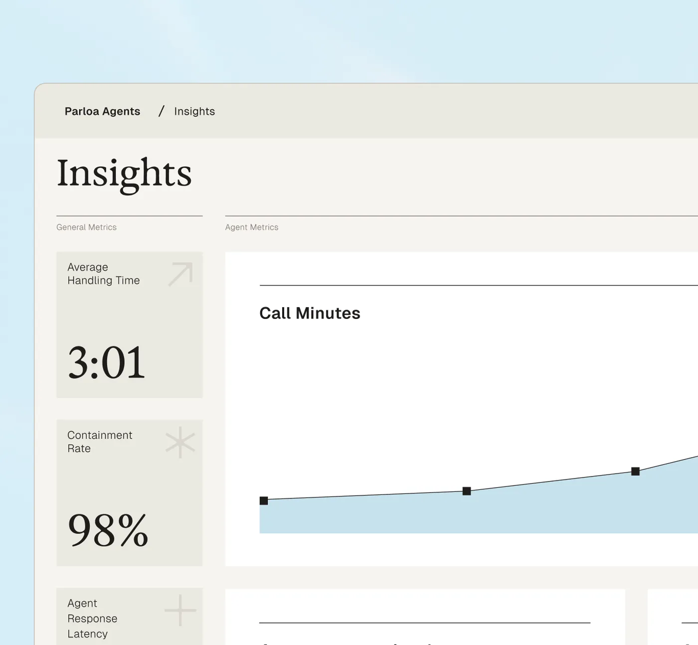 Optimize: Track live metrics like sentiment, task success, fallback frequency, and hallucinations. Parloa’s real-time dashboards and audit tools help teams detect breakdowns and retrain agents with minimal disruption. You can continuously test updated behavior using the same simulation tools used pre-launch.